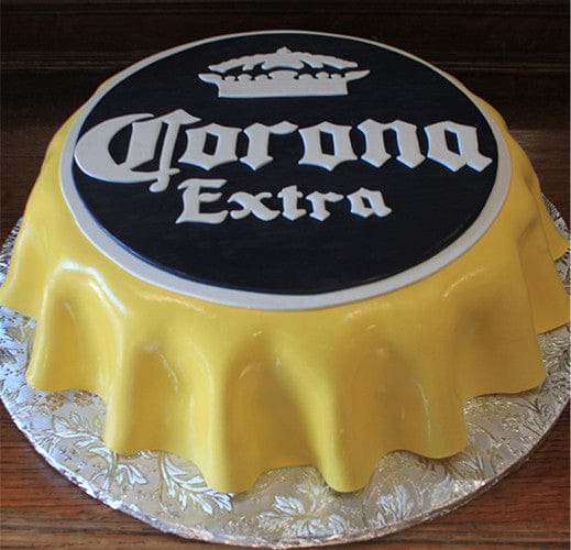 Yellow rolled chocolate with rolled chocolate Corona symbol.