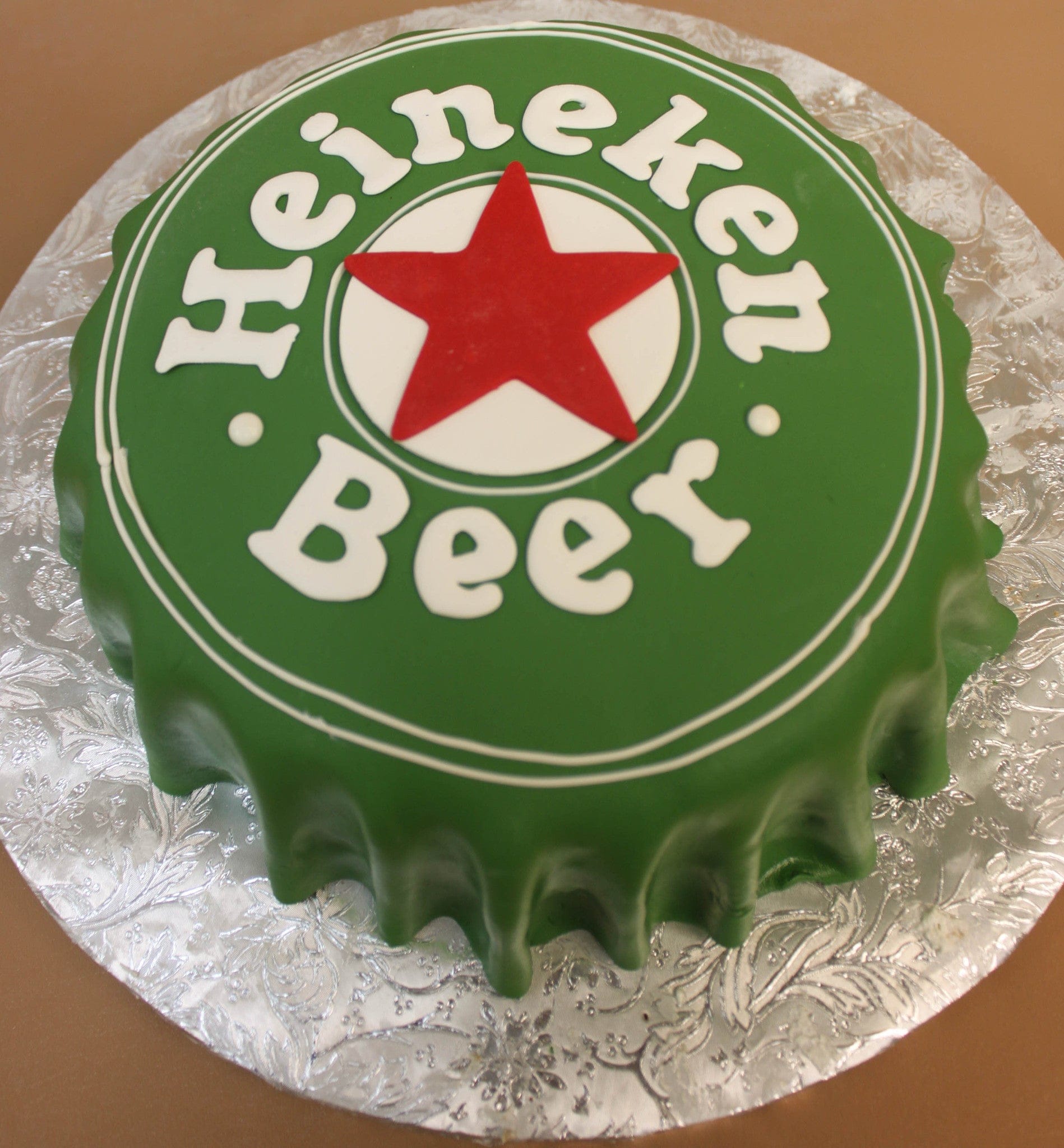 Green rolled chocolate cover. Rolled chocolate Heineken logo in center.