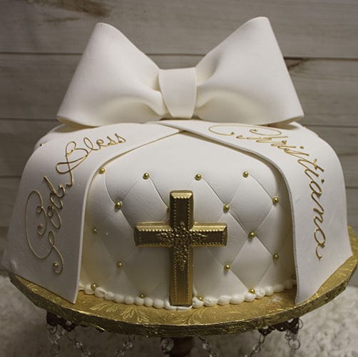 White Bow Cross Cake