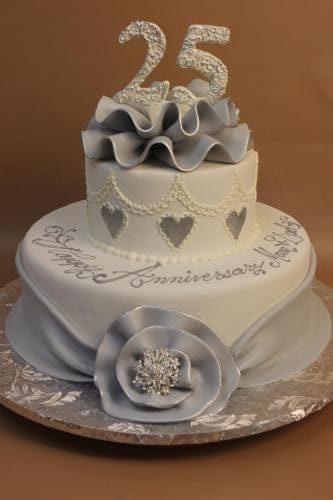 Grey Ruffle Silver Heart Cake