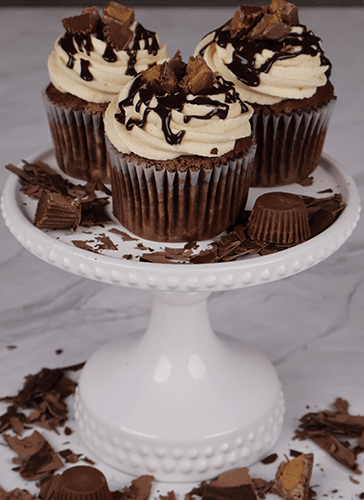 Chocolate cupcake with peanut butter mousse filling and frosting.