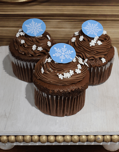Chocolate cupcake with white filling. Snowflake design.